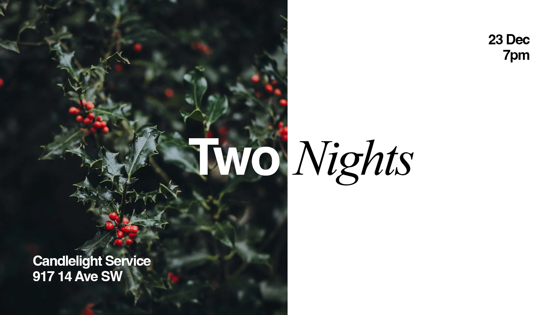 Join us on December 23 at 7pm for our Two Nights Before Christmas Service! It'll be a night of worship, scripture reading, candle lighting, speaking, and celebrating the birth of Jesus. Don't forget to join us afterwards for fun activities including a Photo Booth, karaoke, hot chocolate and treats. We encourage you to pickup invite cards in the Lobby to hand out to your family and friends!
